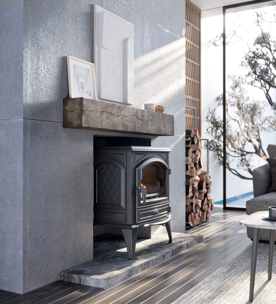 If your home does not feature a dedicated wall cavity for a fireplace, our selection of freestanding fireplaces is designed to be installed next to a side wall or in a corner of a room to ensure that the unit can be vented through the roof or adjacent side wall. It is pivotal that the ventilation on these units is sufficient to avoid any smoke getting trapped in the room. With our closed slow-combustion units, the interior fans and air intake will regulate airflow to ensure that the fire does not suffocate when the front lid is closed.
